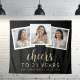 Esta tapeçaria aniversário de 21 anos personalizada apresenta uma colagem de três fotos quadradas personalizadas acima da frase "Saúde a 21 anos" em um elegante roteiro de caligrafia dourada e sans serif font em um fundo preto. Adicione o nome do convidado de honra e o aniversário abaixo. Uma forma excelente de celebrar alguém que está fazendo 21 anos!