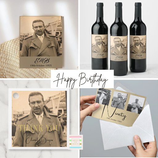 Um Monograma de Foto Pessoal Elegante para o 80º Aniversário.