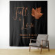 Tema de casamento rústico de folha de bordo Outono Apaixonar-se, cenário de cabine de fotos. Elegante e simples cobre, marrom, com decoração de recepção de fundo preto. Bela decoração com tema country. Direitos autorais da imagem Marg Seregelyi Photography.
