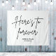 Costume "aqui é para sempre" pano de fundo do casamento. Decoração de cerimônia em branco. Arco moderno e elegante, suporte fotográfico ou decorações de parede.