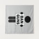 Este design apresenta um manifestante segurando um sinal de banimento de armas.