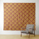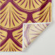Um padrão de sereia se dimensiona em uma cor magenta escura, com fundo dourado. As escalas estão no estilo de deco de arte.