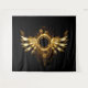 Asas mecânicas brilhantes, com engrenagens e faixa redonda de latão. Steampunk