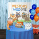 Os Animais Selvagens Azuis De Uma Floresta Fizeram Um Espano De Fundo. Azul, laranja, castanho. Área de Coleta de Animais da Floresta de Madeira por Impressões de Papel Pixel