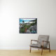 Uma pintura digital de uma águia careca empoleirada em uma torre de madeira derivada lavada na costa rochosa do Alasca; montanhas ficam à distância. O texto personalizável lendo "Alaska" também é exibido.