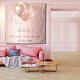 Para um Chá de fraldas elegante. Um fundo de aparência metálica falsa rosa dourado. Decorado com rosa dourado, pingos de brilho de falso rosa, aparência de pingar tinta, gotas de brilho e balões. Personalize e adicione o nome e uma data. Pode ser usado como um banner de boas-vindas ou decor de parede para o chá de fraldas