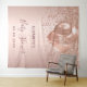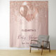 Para um chá de bebê elegante. Um fundo metálico falso dourado rosa. Decorado com pingos de brilho falso rosa, dourado, efeito de tinta pingando, gotas de brilho e balões. Personalize e adicione o nome e uma data. Pode ser usado como uma faixa de boas-vindas, decoração de parede para o chá de bebê ou como um fundo para fotos.