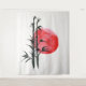 A parede pendurada mostra a silhueta de um bambu delicado em frente a um sol vermelho profundo no horizonte. Bambu representa a graça e a perseverança valorizadas no budismo Zen. O sol vermelho simboliza energia e poder, que são importantes para o iluminismo e o desenvolvimento espiritual no budismo Zen. A atmosfera calma e harmoniosa criada pela imagem lembra o espectador da prática da meditação no budismo Zen. O bambu no primeiro plano representa força e flexibilidade, enquanto o sol no fundo ilumina o caminho para a iluminação e a paz interior. Este muro pendurado serve como uma decoração inspiradora numa sala de meditação ou num jardim Zen, lembrando ao espectador que pratica os princípios do budismo Zen no seu dia a dia.