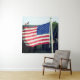 Esta tapeçaria tem duas bandeiras americanas pintadas nela.