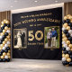 Celebre 50 anos incríveis de amor com este banner personalizado de aniversário de casamento de 50 anos! Seja para homenagear avós, pais ou qualquer casal especial, este elegante fundo preto e dourado é a maneira perfeita de mostrar a bela jornada que eles compartilharam juntos. Com um design de foto antes e depois, este banner é um complemento impressionante para qualquer festa de aniversário, renovação de votos ou reunião familiar. Use-o como um sinal de boas-vindas, fundo de festa ou decoração de parede para adicionar um toque especial à celebração. Perfeito para o dia do aniversário deles, festa surpresa ou até mesmo como um presente atencioso, este souvenir personalizado é uma maneira sincera de homenagear a história de amor deles e tornar o aniversário de ouro deles verdadeiramente inesquecível!