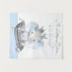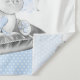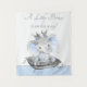 Pano de fundo para chá de bebê do príncipe elefante menino com adorável elefante príncipe em uma linda almofada prateada sobre um fundo azul e branco pontilhado. Este pano de fundo para chá de bebê de elefante é facilmente personalizado com o seu texto.