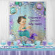 Pano de fundo de chá de bebê da sereia joia com uma sereia morena fofa em um belo fundo de joias. Este banner de chá de bebê da sereia é facilmente personalizado para o seu evento, basta adicionar o seu texto no estilo de fonte e cor que preferir. Você também pode alterar o tamanho conforme necessário.