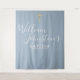Moderno batismo cristã cabine de fotos fundo apresentando uma assinatura nome em letra cursiva dourada elegante. Personalize com as informações especiais do seu batismo ou cerimônia de batismo em letras douradas chiques em um fundo azul empoeirado. Criado por Thisisnotme©