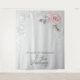Ela Disse Sim! Propaganda de Foto de Casamento - use atrás da noiva e do noivo enquanto eles fazem seus votos, como pano de fundo para a mesa do livro de visitas, como fundo para o cabine de fotos, ou atrás da mesa da festa de casamento. para a noiva e o noivo românticos. Folhas iridescentes prateadas e rosas coração rosa e folhagens em um arco de casamento. Isso faz parte de uma coleção de papelaria de casamento com acessórios de casamento combinando. Design criado para a BarefootBride ™ © por WhimsicalArtwork ™