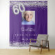 Uma tapeçaria de boas-vindas para uma festa de aniversário de 60 anos glamorosa. Um fundo roxo decorado com pó de brilho prateado falso. Personalize e adicione uma foto de alta qualidade, nome e data. O número 60 é escrito com uma fonte estilo balão. Também pode ser usado como pano de fundo para cabine de fotos e decoração de parede de festa.