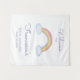 Esta adorável tapeçaria de boas-vindas para o chuveiro de bebê com aquarela de arco-íris e nuvens é uma maneira doce de receber seus convidados para o chuveiro!