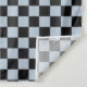 A seamless pattern of alternating black and light blue squares creates a classic checkerboard effect. The design is symmetrical and evenly spaced.