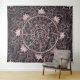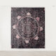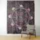 Mandala celestial do sol e da lua com uma ilustração desenhada à mão de preto ocular e rosa dourado falso, apresentando uma falso mancha metálica cor-de-rosa, traços luminosos, flor de mandala do sol e da lua. Um universo espiritual teme beleza henna mandala boêmia design.