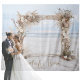 Transforme o seu casamento com o nosso encantador cenário vintage. Apresentando uma grande estrutura branca antiga adornada com madeira seca, flores cor-de-rosa pinceladas, frentes de palma secas, e gramíneas de pântano, esta tapeçaria adiciona um toque de elegância de praia de boho ao seu dia especial. Perfeito para fotos do DIY em casamentos, chás de panela, aniversários e chás de fraldas, este pano de fundo transforma suas celebrações em uma obra-prima visual. Capturar memórias de eternos contra o pano de fundo desta terra maravilhosa floral, onde floresce o amor e a alegria. Faça com que cada momento seja perfeito com este cenário encantador e versátil.