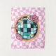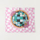 Deixe o poder das flores brilhar! Esta tapeçaria groovy explode com uma deslumbrante bola de discoteca floral em seu centro. Cada faceta é uma beleza diferente em flor, refletindo um caleidoscópio de cores. Contra um fundo lúdico de quadrados xadrez rosa, esta decoração de parede é garantida para trazer um toque de febre da discoteca e charme floral para qualquer quarto.