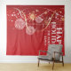Traga o espírito do Natal para a sua casa ou escritório com este gráfico vetorial elegante de enfeites de árvore de Natal brancos e dourados falsos pendurados na ponta de fitas douradas falsas bonitas. Eles são emoldurados por um fundo vermelho escuro com neve e estrelas que faz o design se destacar. Personalize os modelos com sua saudação de Natal personalizada; mensagem ou citação.