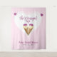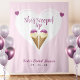 Ela escolheu um cenário de bolo de casamento com sorvete rosa e corações. Personalize-o com os detalhes do seu evento.