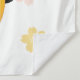 Ilustração vetorial de uma garota oriental fofa num vestido amarelo brilhante com faixa grande de obi segurando um saco azul de gaveta cinchaku. O cabelo preto da menina é decorado com flores e pinos de cabelo do estilo geisha. Esta trabalho de arte foi inspirada pelas bonecas kokeshi tradicionais do Japão e influenciada pelo estilo de arte japonês Chibi Kawaii. Grandes flores coloridas, com a forma de Sakura floresceu, fazem um fundo simples.