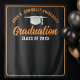 Esta tapeçaria de festa de formatura personalizada, laranja e preto moderna apresenta a tipografia clássica do seu segundo grau ou nome da faculdade para a classe de 2025. Personalize este cenário de fotos com o seu ano de graduação, com o script de microfone manuscrito e o boné de formando para decoração personalizada do formando do excelente.