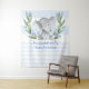 Você vai adorar este adorável elefante de aquarela de bebê com listras azuis e brancas com coroa de folhagem e flores azuis. Ótimo para uma chuvada de bebê de menino.