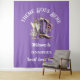 Um par de couros de botas de vaqueira castanhas e roxas, com um padrão floral, tem um copo de água-colorido de espumante e martini ao lado dele e flores roxas. Eles são colocados contra um fundo lavanda que tem modelos de texto branco editáveis que podem ser personalizados para se adequarem à sua celebração especial. Este muro de na moda é ideal para um evento especial de temas ocidentais, country "botas e bling" ou "botas e borbulhas".