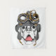Este design apresenta um retrato de cão de boxe num capacete Steampunk.