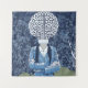 Esta design de tapeçaria azul dominante contém uma ilustração de uma pessoa com uma cabeça feita inteiramente de um cérebro. Esta é uma bela design para presente ao gênio da casa ou escola!