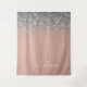 Tapeçaria de Monograma de Nome e Inicial em Script com Brilho Rosa Dourado e Prata. Isso torna o presente perfeito para aniversário de 16 anos, casamento, chá de noiva, aniversário de casamento, chá de bebê ou festa de despedida de solteira para alguém que ama luxo e estilos chiques.