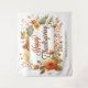 Este belo fundo de cabine de foto de festa Feliz Dia de Ação de Graças apresenta uma adorável borda de folhas de outono em aquarela e flores outonais ao redor da sua elegante mensagem Feliz Dia de Ação de Graças em letra cursiva. Personalize com o nome da sua família ou empresa em marrom claro em meio aos tons terrosos laranja e amarelo neste adorável tapete.