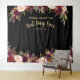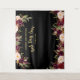 Perfeito para casamentos de outono e casamentos de inverno. Divirta-se tirando fotos no recebimento do casamento com este cenário de cabine de fotografia com design floral chic em vermelho profundo borgonha com escrita dourada e fundo preto que você pode usar para a cabine de fotografia de casamento. Você pode personalizar com o nome do noivo e da noiva e data do casamento. Use o menu personalizar para "personalizar ainda mais" as cores do fundo e fontes, além dos estilos de fonte.