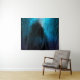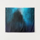 Figura encapuzada em bosque azul com bolhas.