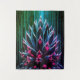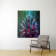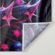Apresentando uma tapeçaria gráfica com um estilo cibernético distinto projetada para melhorar interiores modernos. Esta peça decorativa serve como um ponto focal artístico, capaz de transformar qualquer espaço. A combinação dinâmica de cores azul-esverdeado profundo e magenta vibrante gera uma atmosfera enér