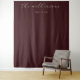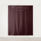 Este elegante pano de fundo para casamento apresenta um design minimalista com um rico fundo marrom, criando uma atmosfera sofisticada e moderna. O layout inclui texto cursivo centralizado para personalização, combinado com uma fonte serif limpa para a data, garantindo uma composição equilibrada e elegante. A tipografia sutil em cor creme contrasta lindamente com o fundo profundo, melhorando a legibilidade e mantendo uma elegância discreta. Perfeito para celebrações formais, este design enfatiza a simplicidade e o refinamento, tornando-o ideal para capturar momentos memoráveis em seu evento especial.