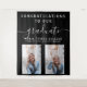 Celebre o sucesso do seu graduado e faça uma festa simples com este pano de fundo de tapeçaria de graduação de duas fotos de caligrafia de script minimalista em fundo preto que você pode pendurar ou anexar à sua parede.
