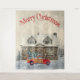 Nesta temporada de férias de Natal, anime a decoração da sua casa, reuniões virtuais ou fotos com este belo fundo de foto. Arte em estilo aquarela com cena de inverno apresentando um carro antigo estilo woody recém-saído da escolha de uma árvore de Natal. Texto moderno e sofisticado de Feliz Natal em estilo script.