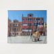 Praça de Veneza. Carrinho com caixas no meio da antiga praça italiana com edifícios coloridos em Veneza, Itália. Correio, serviço de entrega em Itália. Caixas deixadas sozinhas.