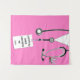 A decoração de pano de fundo com banners de graduação em um médico criativo, com escovas cor-de-rosa de hospital e design de faca suíça engraçada para evento de formando médicos ou festa de celebração. Edite texto para adicionar o nome do médico e suas credenciais médicas e o ano.