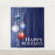 Traga o espírito do Natal para sua casa ou escritório com este lindo vetor tridimensional gráfico de vermelho; baubels brancos e azuis pendurados na extremidade das bonito fitas pontilhadas brancas emolduradas por luzes brancas e estrelas cintilantes. Personalize as modelos com a sua saudação de Natal personalizada; mensagem ou citação.