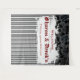 Design goth grunge com um fundo listrado de preto e branco decorado com um belo arranjo de rosas pretas. Caligrafia Old English e tipografia gótica moderna em branco fosco criam um contraste marcante.