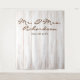 Fundo de tábuas de madeira branca envelhecida de celeiro rústico, com tipografia de texto simples e elegante para nome da família de Sr. e Sra. personalizado; combinado com tipografia serifa para data desde personalizável. É um design atemporal feito especificamente para um casamento rústico ou celebração de aniversário de casamento.