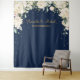 Tapeçaria de casamento floral Boêmio Navy e branco, cortina de fundo para festa, banner para cabine de fotos, com eucalipto verde e rosas brancas, hortênsias e brilho dourado. Fácil personalização. Entre em contato para personalizar. Blush Roses ©