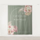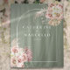 Belas aquarelas florais de grama pampas e moldura de arco chic enquadram seus nomes e data especial em tipografia elegante e sofisticada em um fundo verde sage. Projetado por Thisisnotme©