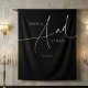 Uma tapeçaria de casamento minimalista apresenta uma caligrafia delicada.