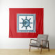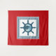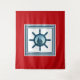 Design com temas náuticos, com decoração da cena da vela em quadrados com faixas em fundo vermelho