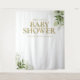 Um cenário de foto de chuvada de bebê elegante com tipografia dourada chique e folhagem verde botânica bonita. Criado por Thisisnotme©
